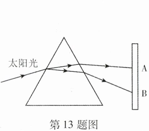 13.如图所示,太阳光通过三棱镜后,在光屏上会形成一条彩色光带(AB区域),这说明白光是由各种