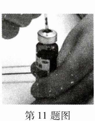 11.如图所示,用手轻轻握住空的口服液的小药瓶,发现药瓶中的残余药液自己沿着吸管向上"走",这是瓶中的空气