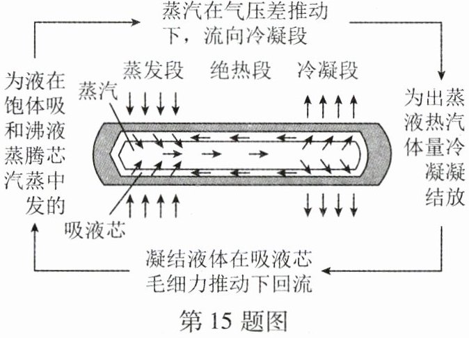 15.如图所示是热管的工作原理图,当热管的冷凝段遇冷时,蒸气
