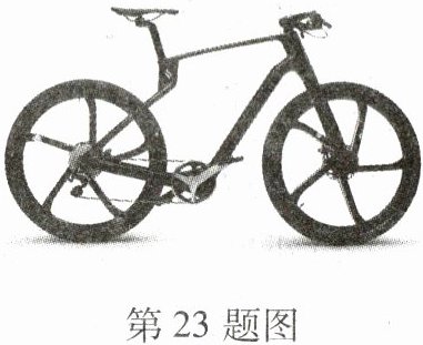 23. (7分) 如图所示为3D打印碳纤维自行车,碳纤维是一种性能优异的新材料,它的密度比钢小,但抗拉强度比钢大。已知 $\rho_{碳纤维} = 1.6 × 10^{3}kg/m^{3}$,$\rho_{钢} = 7.9 × 10^{3}kg/m^{3}$,求: