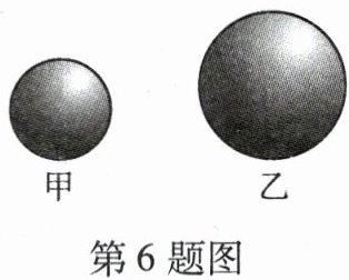 6. 如图所示甲、乙是两个由同种材料制成的金属球,甲球质量为 60g,体积为$ 12cm^3,$乙球质量为 120g、体积为$ 16cm^3。$这两个金属球,一个是实心的、一个是空心的。下列说法正确的是 (