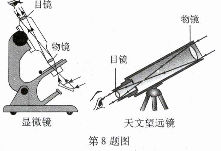 8. 如图甲、乙所示分别是显微镜和天文望远镜的示意图,关于两种仪器下列说法正确的是 (