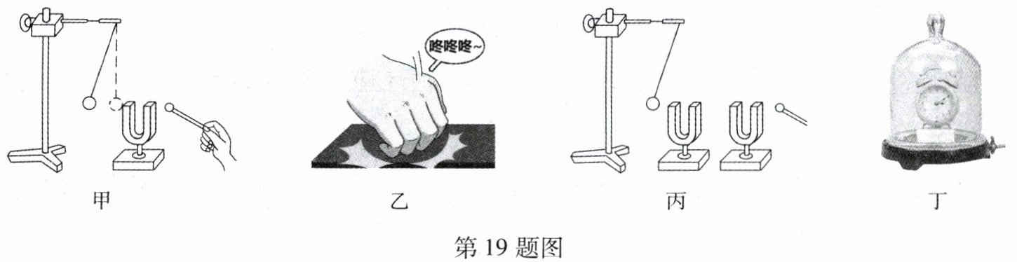 。(3)如图丙所示,敲响右边的音叉,左边完全相同的音叉也会发声,并且把泡沫塑料球弹起,该实验能说明声音可以传递