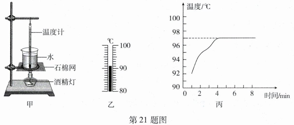 (3)改正图中错误后,从水温达到90℃开始,小明每隔1min记录一次温度,某时刻温度计的示数如图乙所示,此时水的温度为