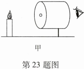 23.(5分)如图甲所示,在探究小孔成像的实验中,小明用一个空的易拉罐,在其底部中央开一个小圆孔,并将其顶部剪去,蒙上一层半透明薄膜,将点燃的蜡烛按图甲的位置放置在小孔的前方。