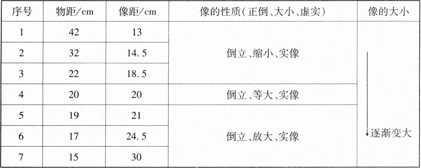 分析表中的数据,可知凸透镜成放大像和缩小像的物距分界点是