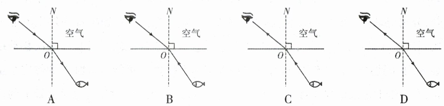 5.钓鱼是人们休闲放松的一种健康生活方式,下列能正确表示光从水中鱼身上进人垂钓者眼中的光路是(