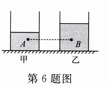 6.(双选)(2023·郑州期末)如图所示,甲、乙两个完全相同的烧杯中分别装有两种液体,烧杯对桌面的压强相等。A、B是两种液体中距离杯底相同高度的两点,下列说法正确的是( )