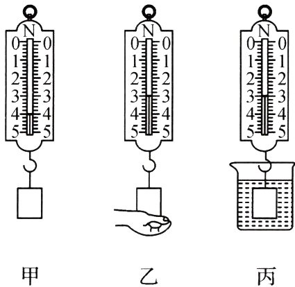 (3)如图丙所示,将物体浸入水中,比较图甲、乙、丙所示实验,说明______对__________也有向上的托力,即浮力,请在图丙中画出物体的受力示意图。