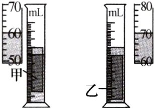 (1)量筒中装有20mL的水,放入甲后,量筒的示数为60mL,