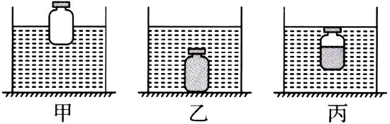 ③如图丙所示,在玻璃瓶内装适量水,浸没在水中,玻璃瓶静止,则浮力________重力,即处于________状态。