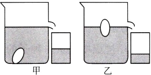 8. 如图甲所示,将一长方体木块放入盛水容器中静止时,木块体积的五分之四浸入水中,此时木块排开水的重力为16 N,求:(ρ水 = 1×10³ kg/m³,g取10 N/kg)