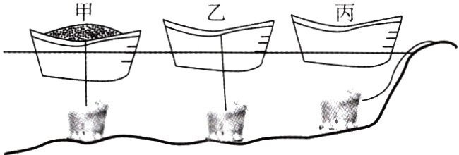 7. 新考向 物理观念(2024·河南)宋朝的怀丙利用浮船打捞铁牛,展现了我国古人的智慧。如图为打捞过程示意图,先将陷在河底的铁牛和装满泥沙的船用绳索系在一起,再把船上的泥沙铲走,铁牛就被拉起,然后把船划到岸边,解开绳索卸下铁牛,就可将铁牛拖上岸。若船在图中甲、乙、丙三个位置时所受的浮力分别为F甲、F乙、F丙,则下列判断正确的是( )