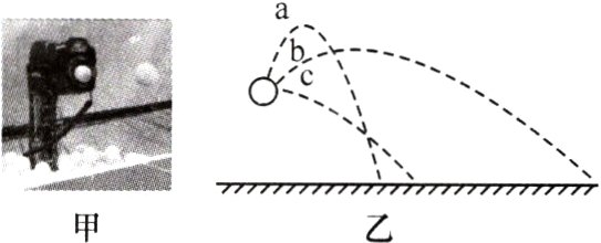 14. 新考向 科学推理 图甲为一款乒乓球发球机。如果乒乓球发球机在同一高度以相同的初速度朝不同方向分别发出a、b、c三个质量相同的球,如图乙。若不计空气阻力,请你猜测三球到达乒乓球台的速度大小______(填“相同”或“不相同”),理由是______。