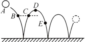 B. 篮球第一次反弹后到达最高点D时,动能为0