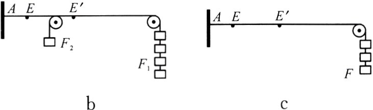 (3)通过比较______和______(填“a”“b”或“c”)两种情况,可知同一直线上方向相反的两个力的合力大小等于这两个力大小之______,方向跟较大的那个力的方向相同。