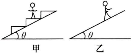 4.(2024·开封鼓楼区期末)某商场中有两种电梯,甲为阶梯式电梯,乙为履带式电梯。如图所示,小明乘甲、乙两种电梯匀速从一楼到二楼,该过程他与电梯保持相对静止,下列说法错误的是 ( )
