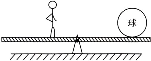 10. 60 kg的人站在跷跷板某一位置时,跷跷板处于如图所示的平衡状态。根据图中人、支点和球所在的位置之间的距离的粗略关系,可以估测出球的质量约为( )