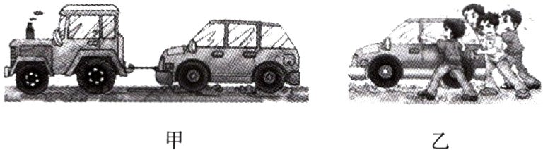 12.新考向 科学推理 如图甲所示,用一台拖拉机将陷入泥潭的汽车拉了出来。如图乙所示,一群中学生齐心协力也可以把汽车从泥潭中推出,此时我们说拖拉机对汽车的拉力是同学们对汽车推力的________,其主要依据是______________________________。