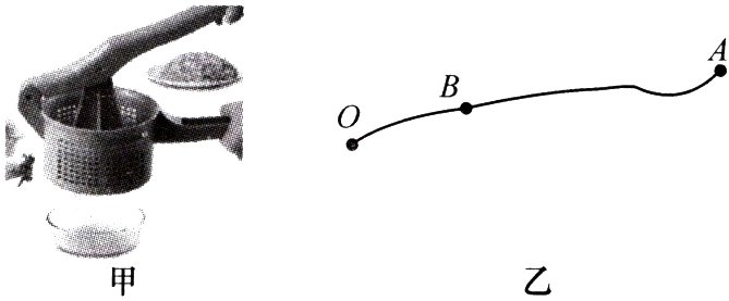 9.(2024·郑州二七区期末)如图甲所示是一种蔬菜挤水器,其手柄可以看作一个杠杆,图乙是其简化的示意图,请在图乙中画出阻力$F_{2}$及在A点施加的最小动力$F_{1}$的示意图。