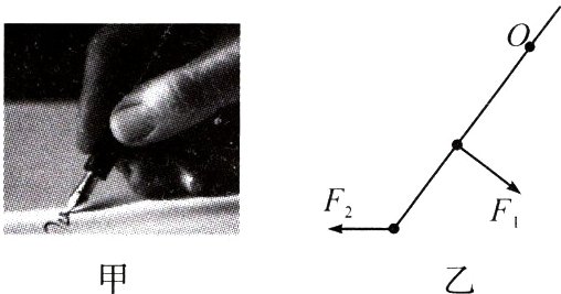 1.(2024·济源期末)杠杆是一种物理模型,生活中很多物体使用时都可看作是杠杆。如图甲为用手写字时的情形图,笔可以看作是杠杆,图乙为其简化图,其中O为支点,$F_{2}$为阻力,请画出$F_{2}$的力臂$l_{2}$。