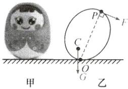 8.(2024·焦作期末)如图甲所示,一个“不倒翁”静置于水平地面上。在拉力作用下“不倒翁”处于倾斜静止状态,此时“不倒翁”可以看成是一个杠杆,图乙是其简化示意图,O点是支点,C点为“不倒翁”的重心。请在图乙中画出“不倒翁”所受的重力,以及P点所用最小拉力的示意图。