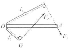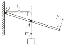 3.杠杆OA在力$F_{1}$、$F_{2}$的作用下处于静止状态,O点是支点,$l_{2}$是力$F_{2}$的力臂,在图中画出力$F_{1}$的力臂$l_{1}$。