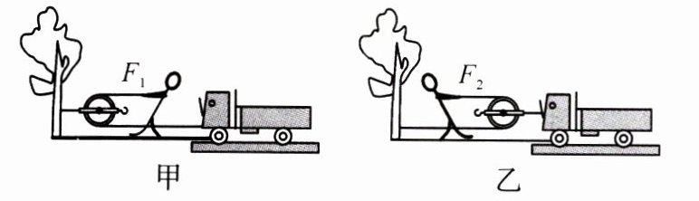 5.一辆小汽车陷进了泥潭,司机按如图所示的甲、乙两种方式安装滑轮,均可将小汽车从泥潭中拉出,你认为甲方式中滑轮的作用是__________________;设用两种不同方式将汽车拉出泥潭施加的力分别为F1、F2;则F1______(填“>”“<”或“=”)F2;如按乙方式,人拉绳头移动了1 m,那么小汽车被拉动了________m。