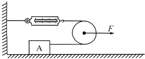 13.如图所示,在拉力F的作用下,滑轮和物体A一起向右做匀速直线运动。实验中,弹簧测力计的示数是5 N,则物体A所受的摩擦力是_____N。若不计滑轮和弹簧测力计的重力以及滑轮与绳之间的摩擦,则拉力F是______N。若滑轮移动了2 m,则物体A移动了______m。