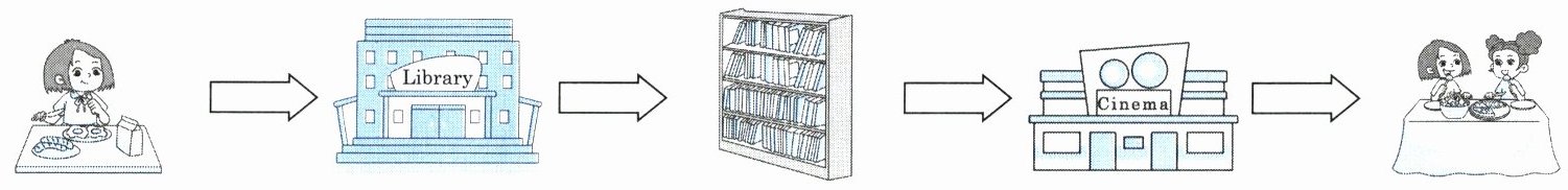 八、下面的图片依次展现了 Lingling 上周日所做的事情。请根据图片提示,用数字1~5给下列句子排序。(10分)