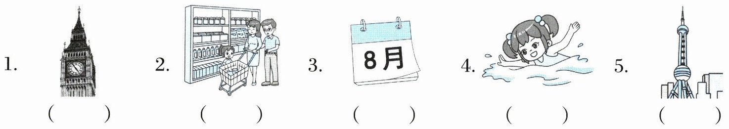 二、听句子,判断下列图片与所听内容是(T)否(F)相符。(5分)