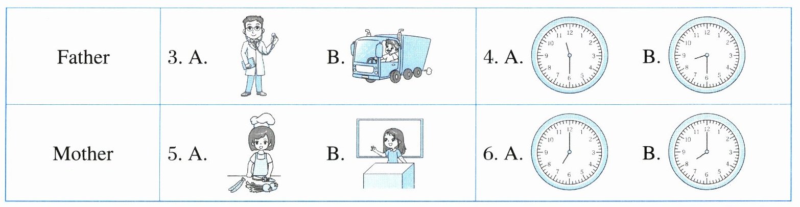 ( )4. Mary’s father goes to work at _______.