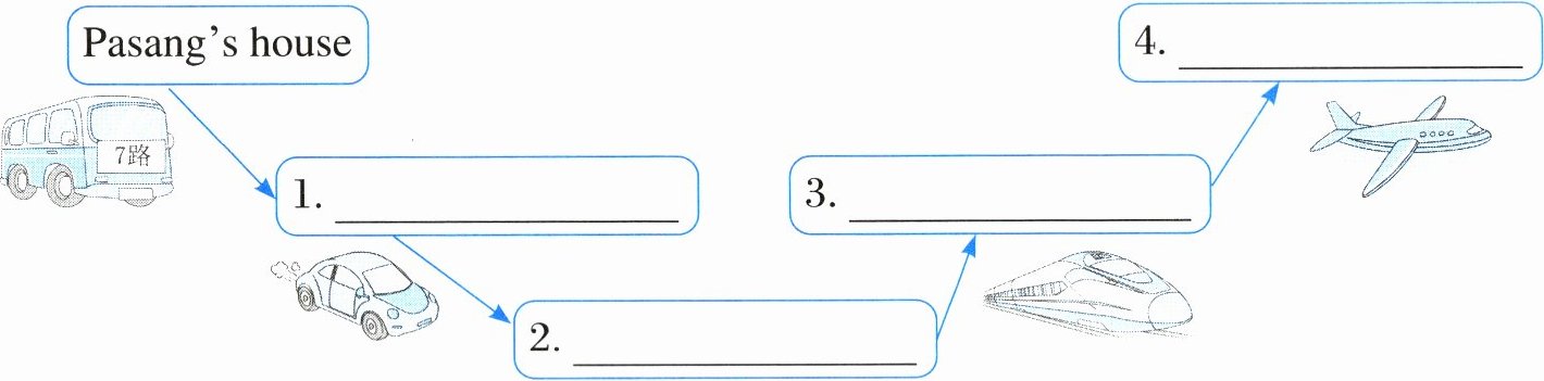 任务一:新考法·框架梳理 根据日记中的信息,完成旅行路线图。(4分) |