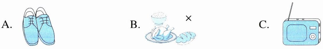 ( ) 3. A. Fish and eggs. B. Yes, he is. C. A T - shirt.