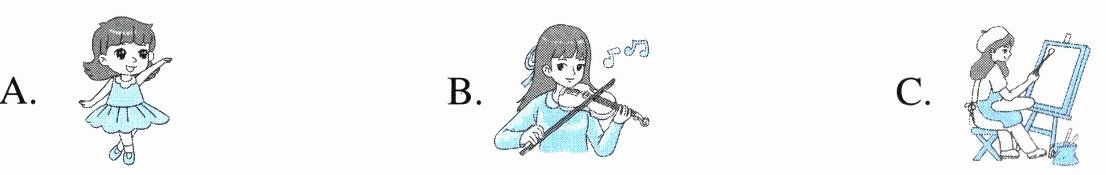 ( ) 5. A. I swam. B. At half past seven. C. I’ll dance.