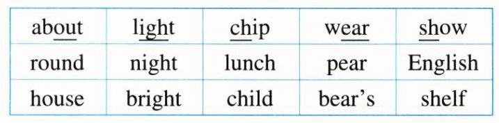 四、新形式·歌谣 从歌谣中找出含有与画线部分相同的字母组合且读音相同的词,填在表格中相应的位置。(5分)