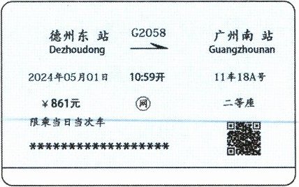 三、新形式·车票(山东省德州市改编)Li Ming 去广州旅行了,下图是他的车票。请根据车票信息及常识,选择正确的答案。(20分)