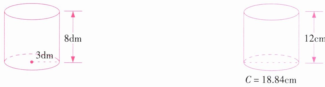 $3.14×3^{2}×8 = 226.08(dm^{3})$ , $3.14×(\frac{18.84}{2×3.14})^{2}×12 = 339.12(cm^{3})$