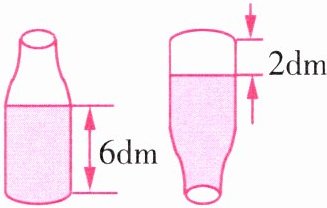 5. 下图的饮料瓶中装有 2.4 升饮料,正放时饮料的高度是 6 分米,倒放时空余部分的高度是 2 分米。这个瓶子还能装饮料多少升?