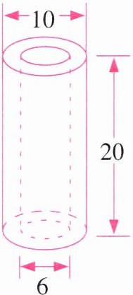 $r_{大}=\frac{10}{2}=5(cm)$,$r_{小}=\frac{6}{2}=3(cm)$,$3.14×5^{2}×20 - 3.14×3^{2}×20 = 1004.8(cm^{3})$