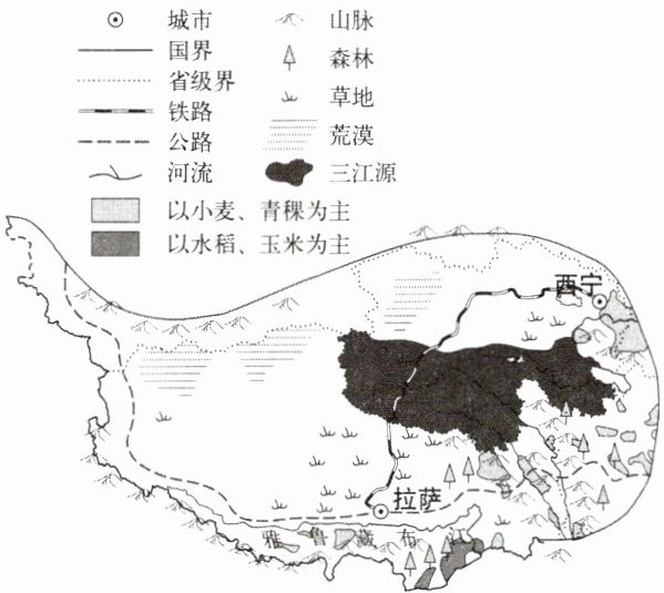 6青藏地区的农作物一般分布在河谷地带的首要原因是 ( )