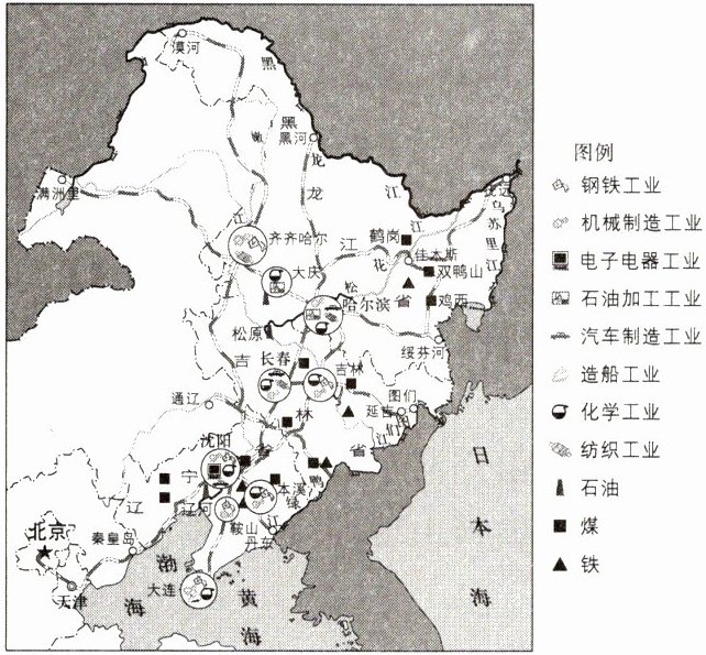 (5)东北三省拥有丰富的矿产资源,再加上便利的海陆交通,东北三省是中华人民共和国成立后建成的第一个重工业基地,是“新中国工业的摇篮”,也是我国最大的重工业基地。
