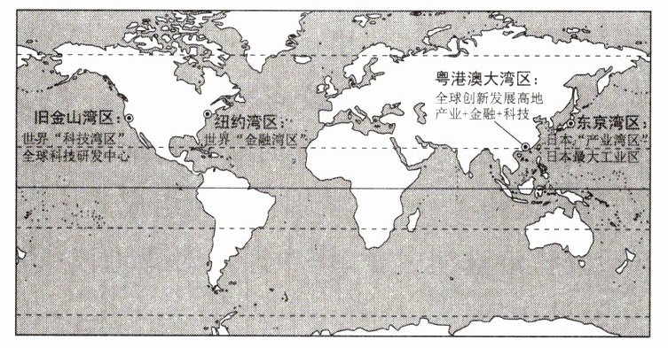 [2022四川乐山中考,中]读世界四大湾区部分数据统计表(2018年)及位置示意图,完成2~3题。
