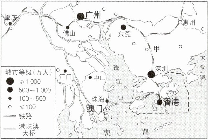 (2)图中,甲铁路线连接北京与粤港澳大湾区,该铁路线是______线,这条铁路的建成促进了香港的繁荣与稳定。
