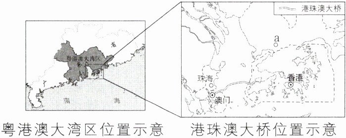 [2024云南中考]深中通道和港珠澳大桥是粤港澳大湾区的超级跨海工程。读“粤港澳大湾区及深中通道和港珠澳大桥示意图”,回答1~2题。