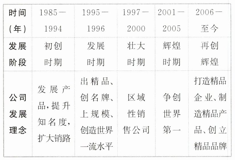 @@5. **C** 【解析】从该公司整个发展过程看,从最初的提升知名度到出精品、创名牌到最后的创立精品品牌,其一直致力于打造精品品牌,C正确。故选C。