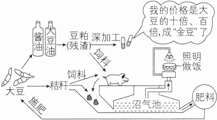 (3)图中生产沼气的原料主要是秸秆和牲畜粪便等,废弃物的再利用有利于减轻环境污染。