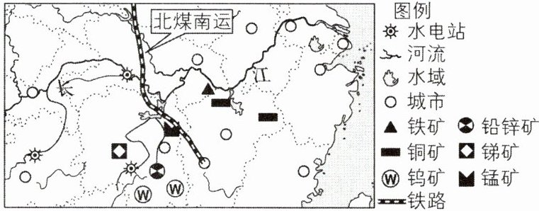 材料二 下图为“北煤南运大通道”经过的部分南方地区。
