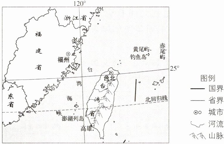 [2024四川凉山州中考]台湾省是祖国神圣不可分割的领土。下图为台湾省示意图。据此完成3~4题。