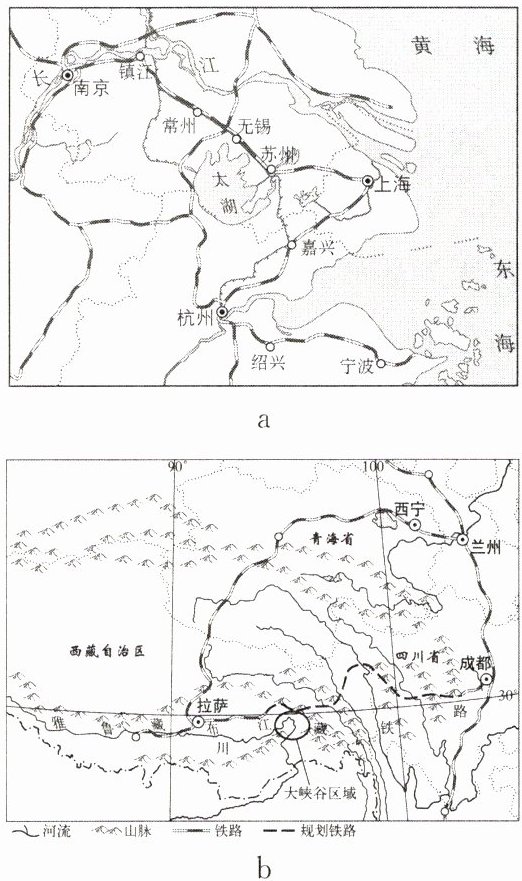 材料二 图a为长江三角洲区域图,图b为西南地区局部图。